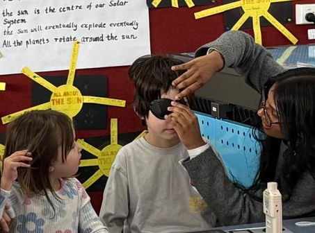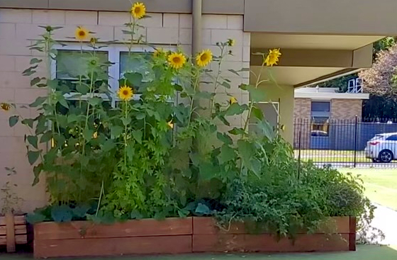 School and kindergarten children learn how to grow food in veggie beds built by our club