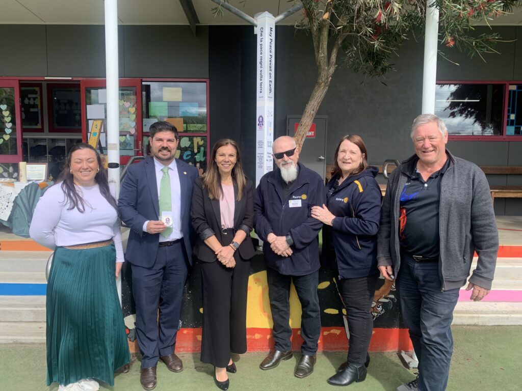 On November 5th, President Peter Wilson, and fellow Pascoe Vale Rotarians Anthony Cianflone MP, Bruno and Deborah D’Aprano attended a special Peace Pole ceremony at St Oliver Plunkett Primary School.