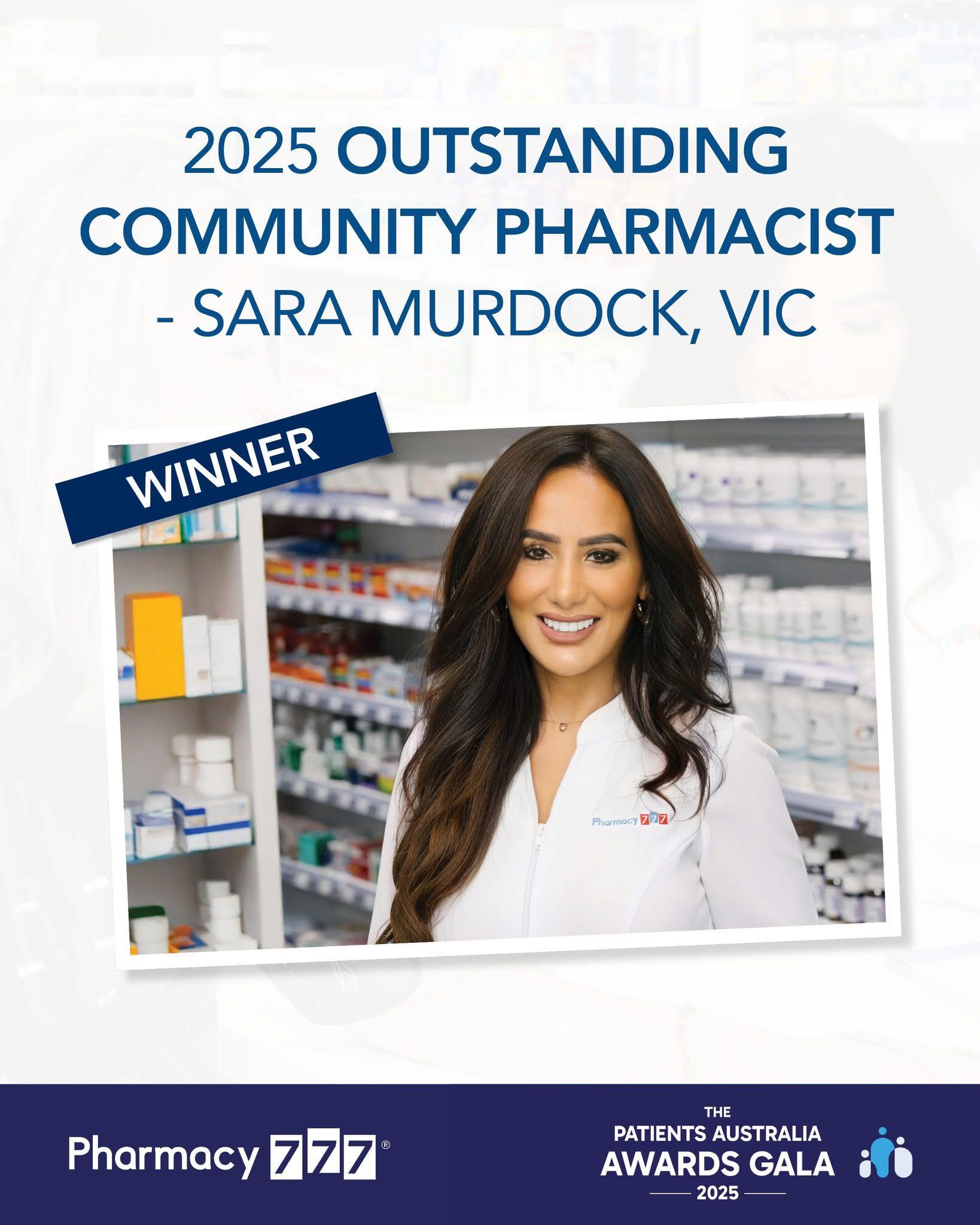 We are thrilled to share some incredible news! One of our own has been recognised for her outstanding dedication and service. Congratulations to Sara Murdock for being named as the Outstanding Community Pharmacist, under the 2025 Patient’s Australia Awards: a national honour celebrating exceptional, patient-nominated healthcare providers.