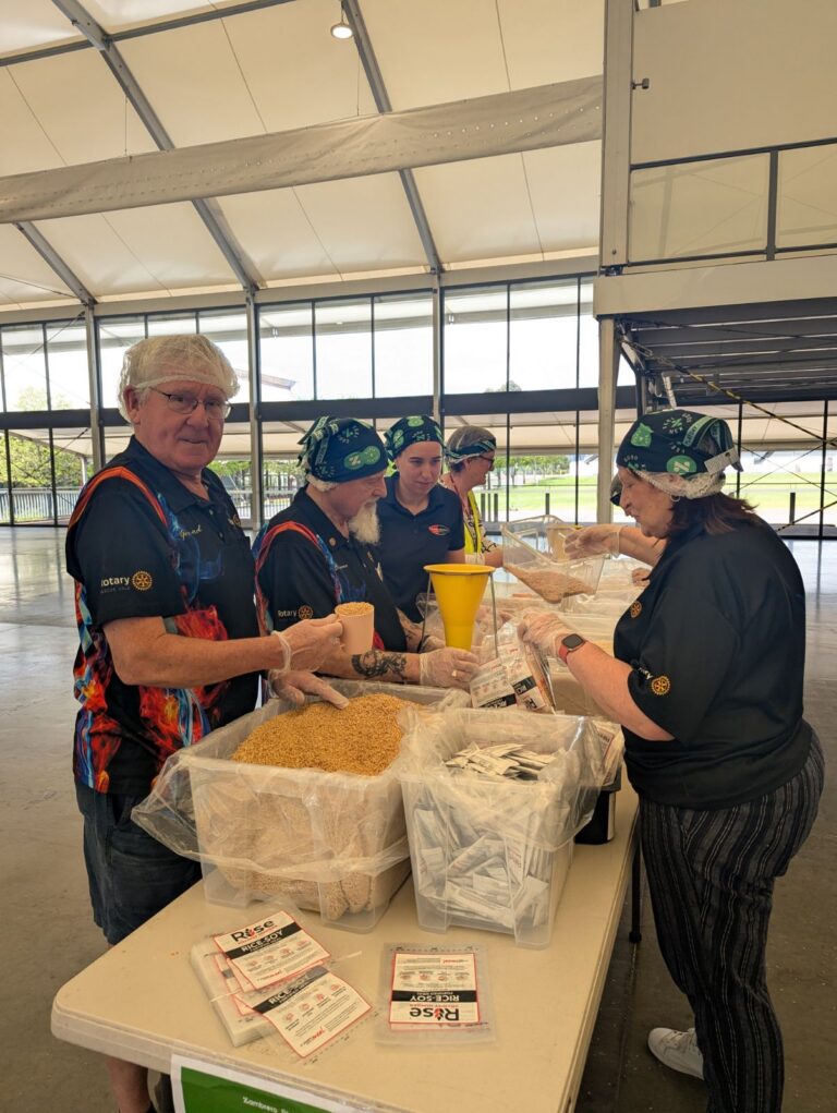 Our Rotary team joined the energetic crowd at the Melbourne Showgrounds, and worked side by side with other volunteers. Together, we packed thousands of meals made up of rice, lentils, and soy protein. These ingredients make a world of difference to families facing food insecurity. These meal packs are being sent to the Philippines.