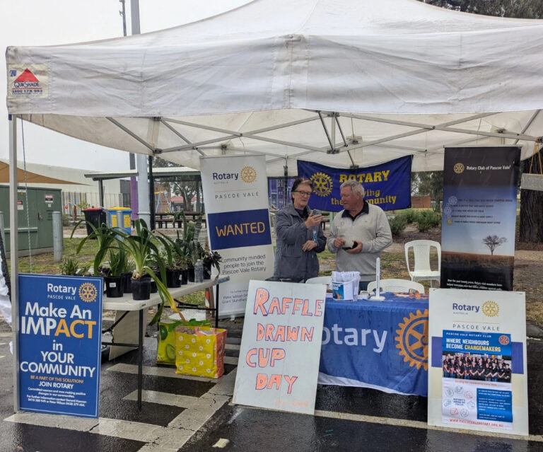 Even though our Festa fun was cut short, we still managed to share a few laughs, serve a few sausages, and fly the Rotary flag even if it was flapping around in the storm!
